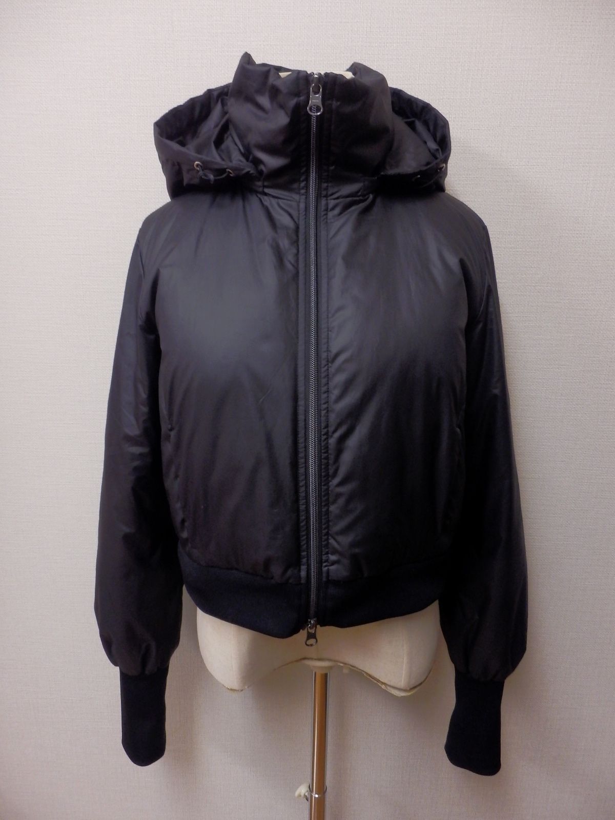 黒のダウンコートです。ジャケットと裾の部分がファスナーでつながっていて、コートでもジャケットでも2wayで使用できます。