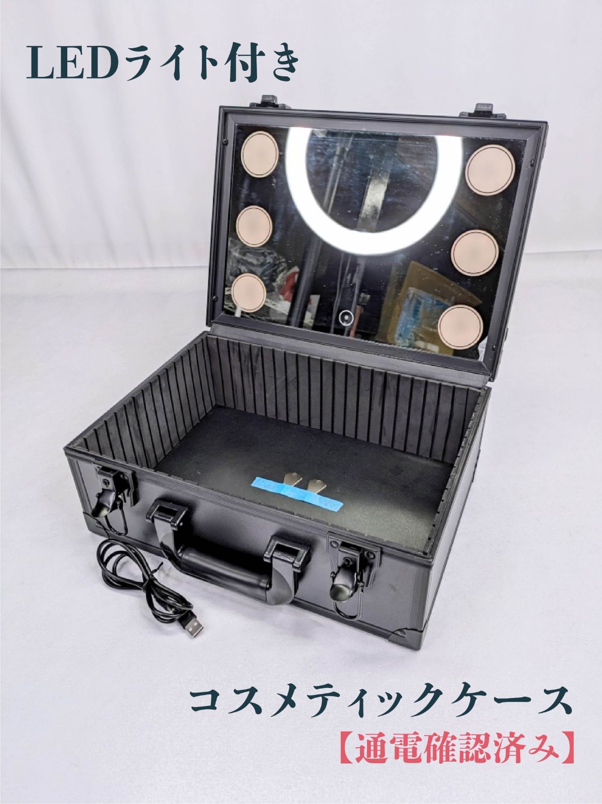 通電 済み LEDライト付きコスメティックケース コスメケース メイクボックス トラベルバッグ ミラー付き ライト付き