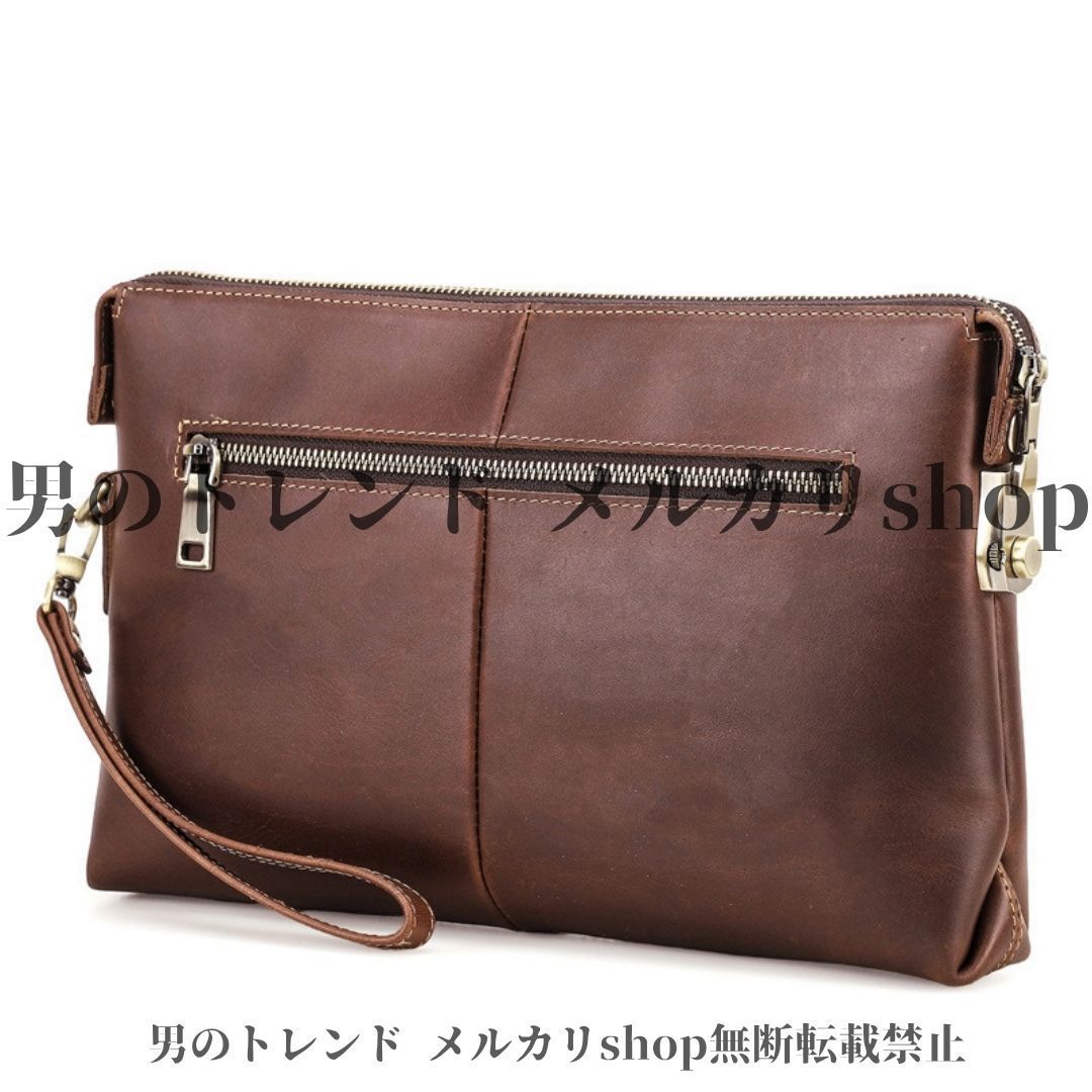 クラッチバッグ 本革 ヴィンテージ メンズハンドバッグ メンズ レディース レザーバッグ パスワードロック 腕ストラップ付き ipad用 トップグレイン革 おしゃれ 40代 50代 60代 男性 レザークラッチバッグ ブラウン