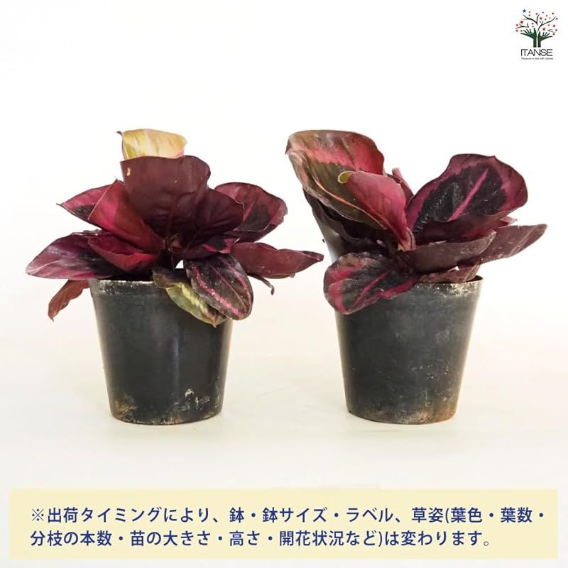 ITANSE カラテア レッドモジョ 3号 セット 観葉植物 学名 Calathea Red Mojo クズウコン科 カラテア属 非耐寒性多年草 別名 ゴシキヤバネショウ 五色矢羽蕉 ピンクスター 深いグリーンから黒にも見える濃緑色の円形の葉 筆