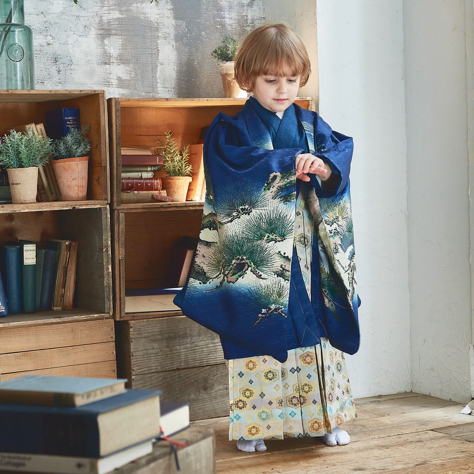 七五三 5歳 3歳 男の子 男児 着物 羽織 袴 セット 紺 鷹 松 B 10