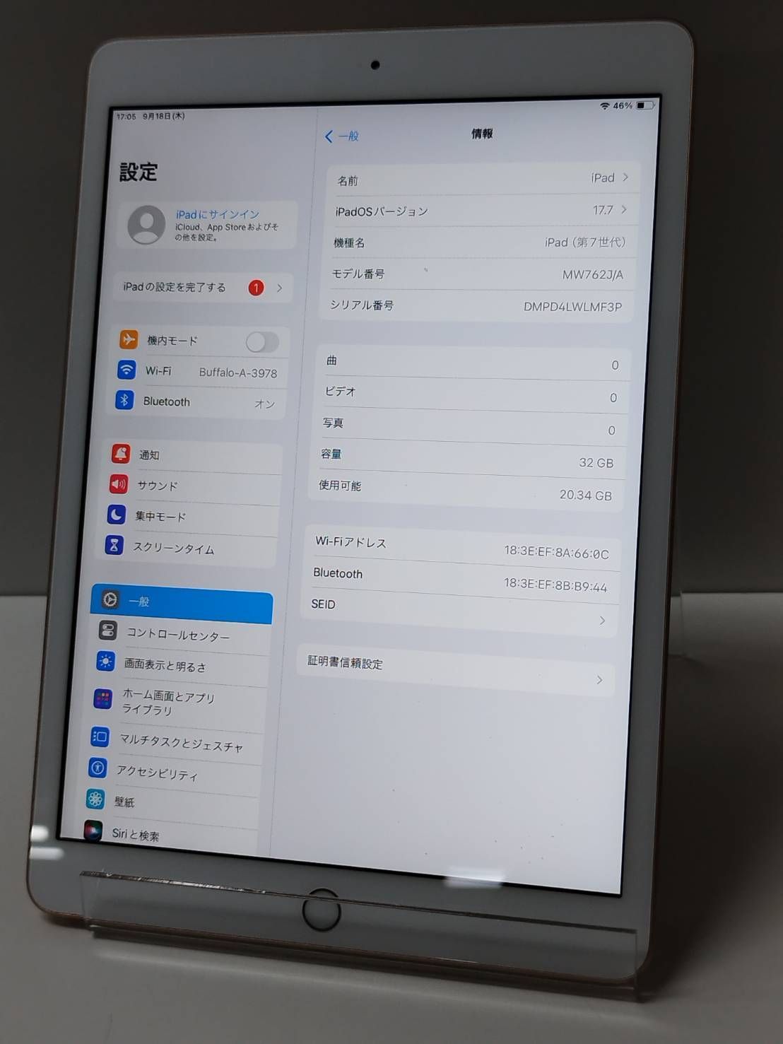 【Wi-Fiモデル】iPad 第7世代/A2197/32GB〈MW762JA〉