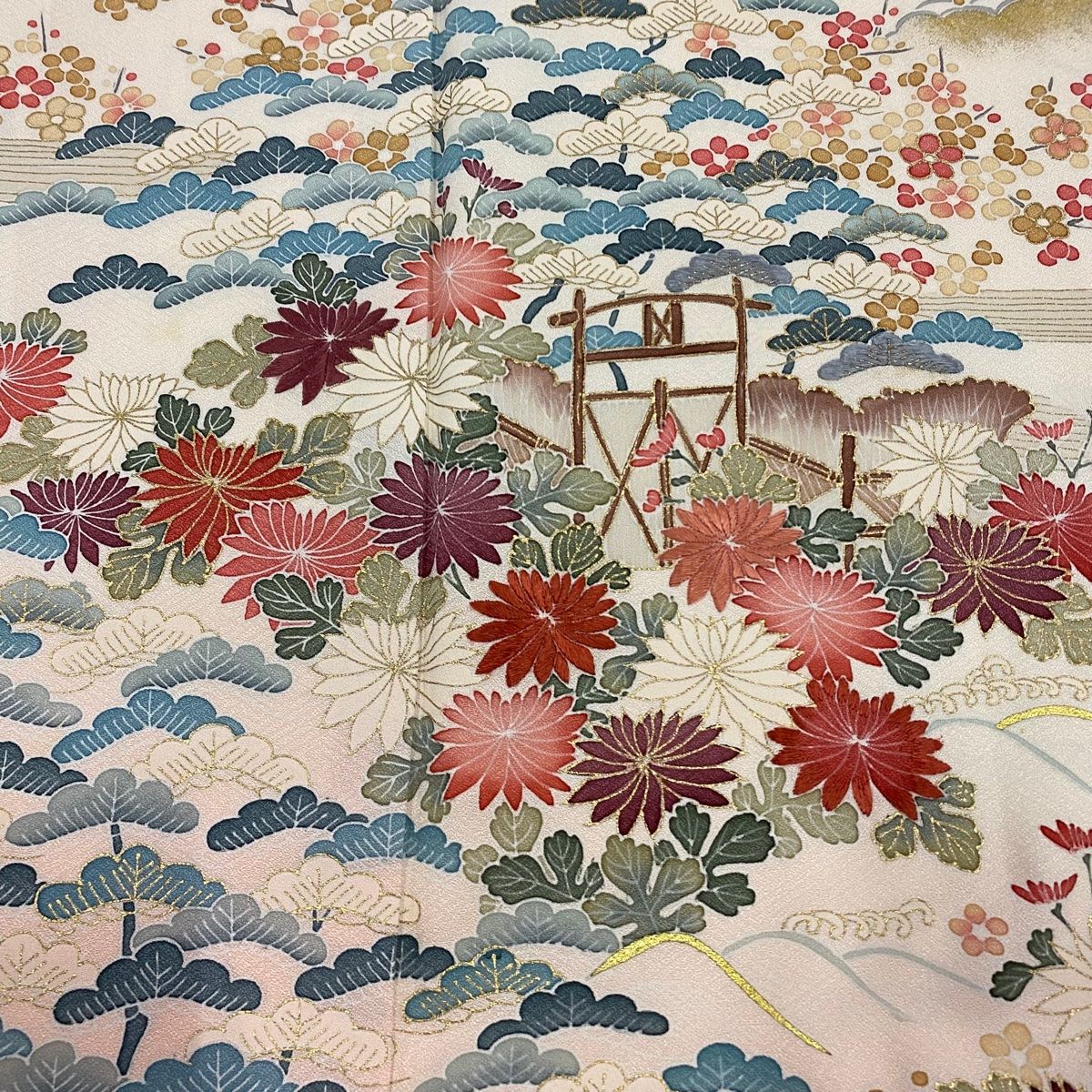 訪問着 身丈165.5 cm 裄丈67 M 袷 松竹梅 菊 刺繍 金彩 クリーム 正絹 秀品