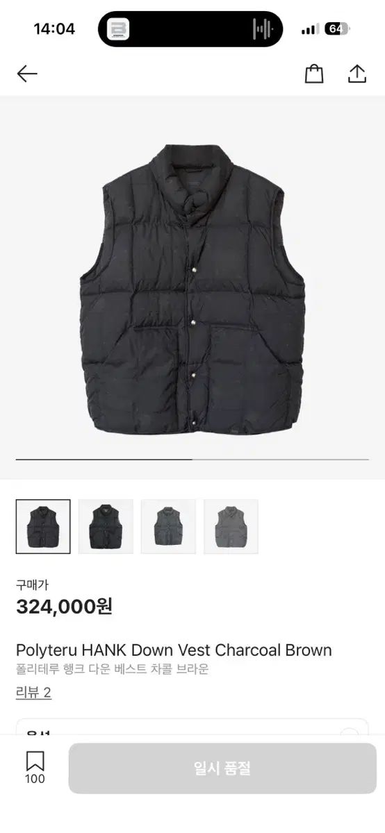 2 POLYTERU ハンク ベスト チャコール ブラウン