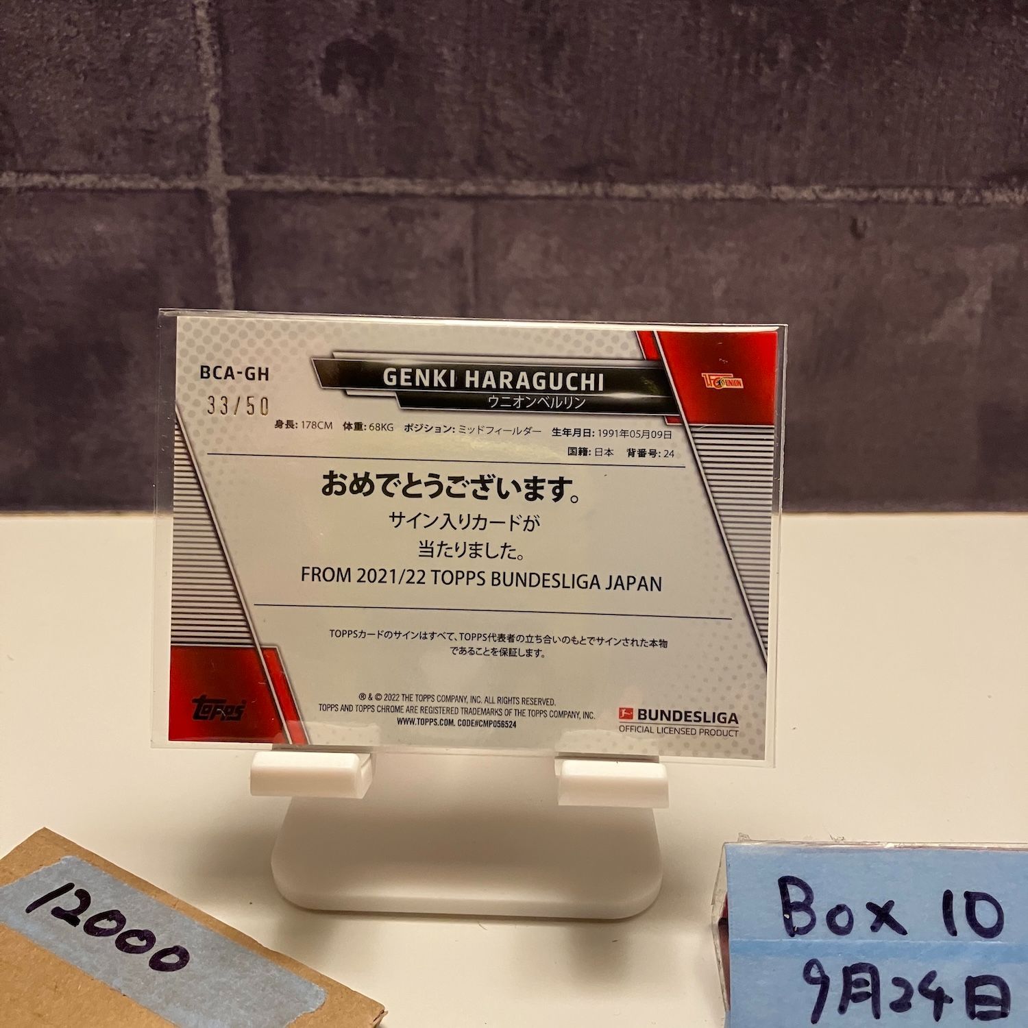 2022 Topps Chrome Bundesliga 原口元気 33/50 サイン ウニオンベルリン Mojo Refractor