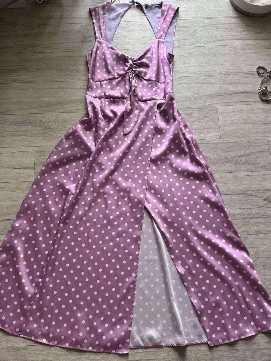 シルクのようにやわらかな光沢が魅力のドットポイントワンピース