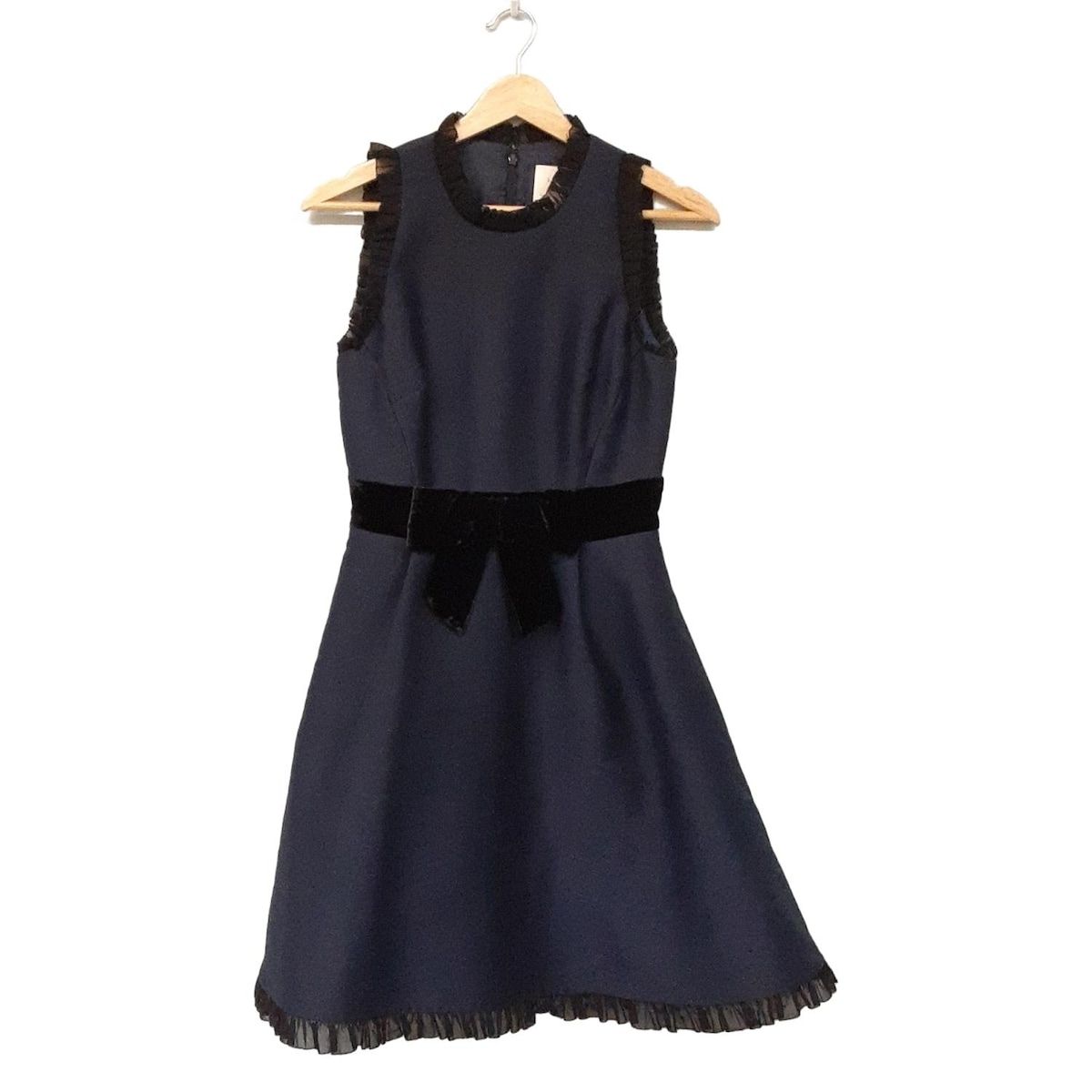 Kate spade ケイトスペード ワンピース サイズ0 XS レディース - ネイビー×黒 ノースリーブ|ひざ丈|リボン|フリル
