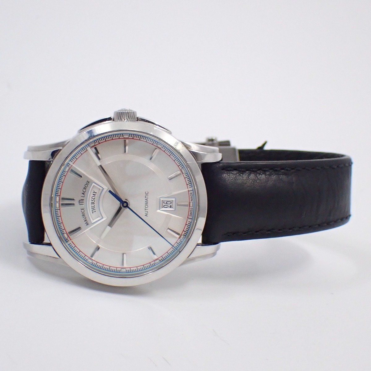 モーリスラクロア ポントス デイデイト 自動巻き メンズ 腕時計 シルバー文字盤 革ベルト PT 6158-SS 001-131