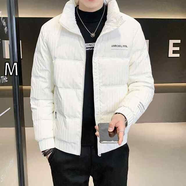 M 秋冬 コーデ メンズ 服 シンプル ファッション オシャレ 大人 かっこいい 大きいサイズ ストリート 紳士服 ダウン ジャケット ストライプ スタンド スタイル