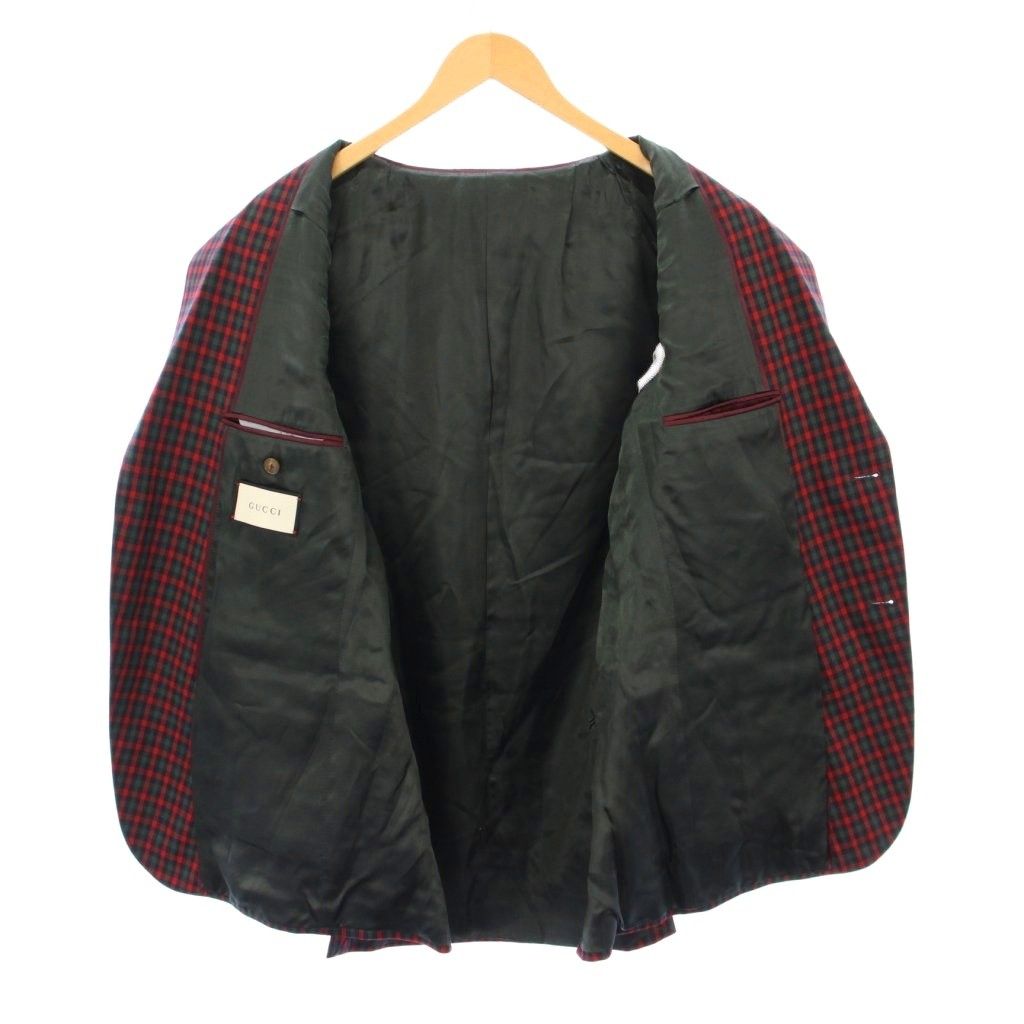 グッチ GUCCI テーラードジャケット ブレザー アウター シングル 総裏地 ウール カシミヤ混 チェック柄 54 赤 レッド 緑 グリーン BB