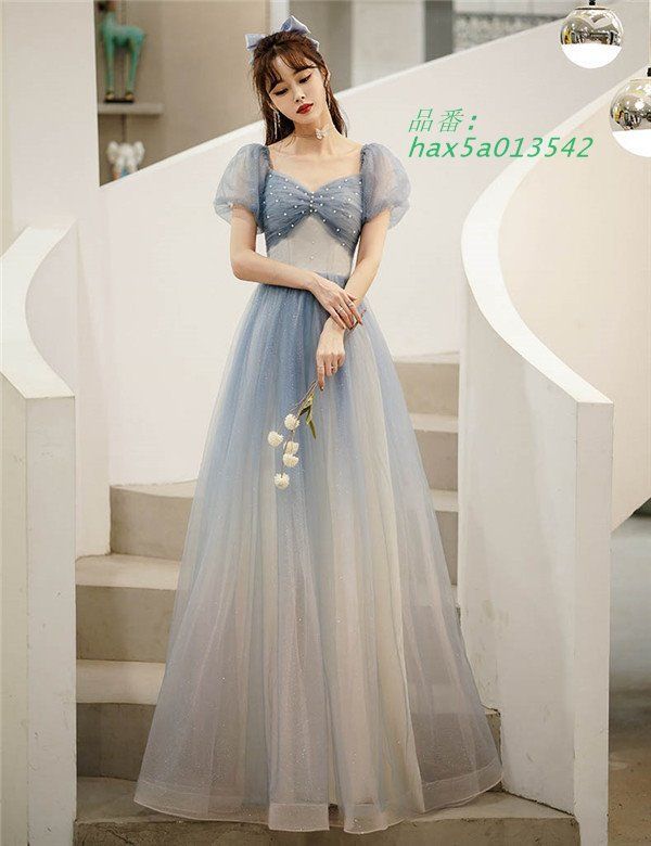 パフスリーブドレス 大人 ピアノ 発表会 演奏会用ドレス イブニングドレス 同窓会 パーティードレス透明感 ロング 母親 成人式 結婚式 hax 5 a 013542