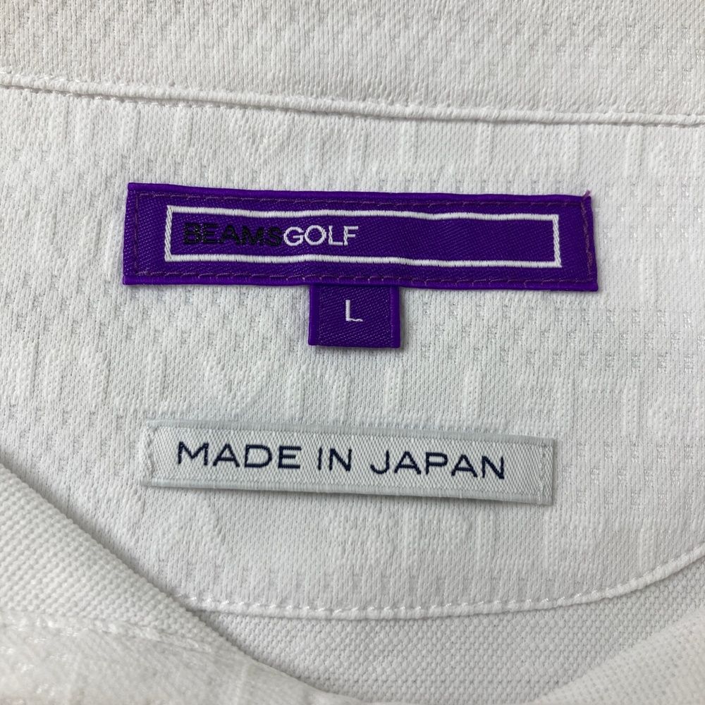 サイズ L BEAMS GOLF ビームスゴルフ モデル 襟付き 半袖Tシャツ 総柄 ホワイト系 ゴルフウェア メンズ ストスト