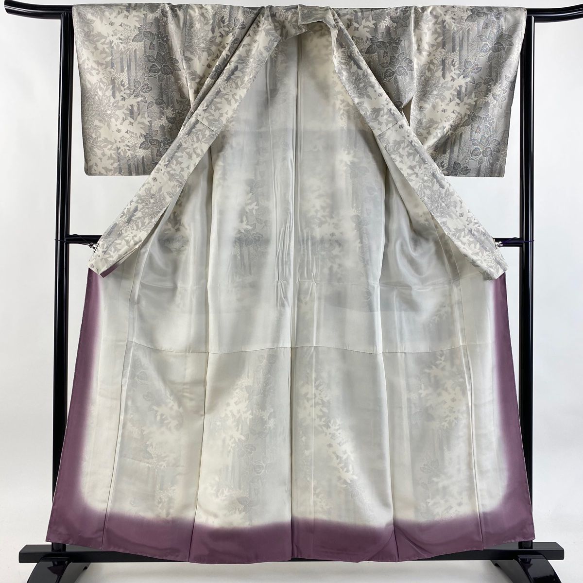 紬 身丈160 cm 裄丈64 M 袷 名古屋帯セット 葉と実 シルエット 灰色 正絹 秀品