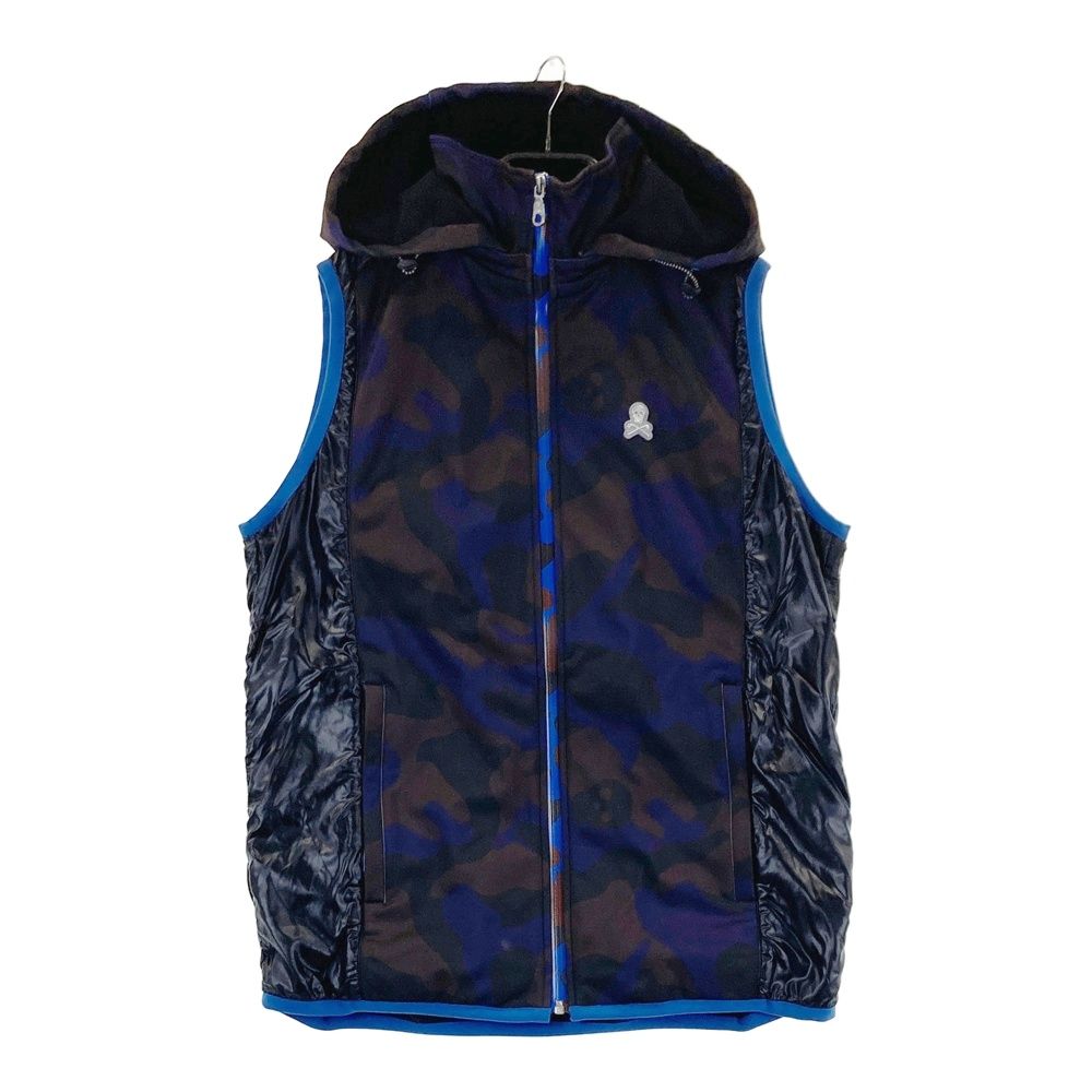 サイズ XL MARK-LONA マークアンドロナ 2 WAY 裏起毛 中綿切替 ジップベスト スカル 迷彩 カモフラ柄 パープル系 ゴルフウェア メンズ ストスト