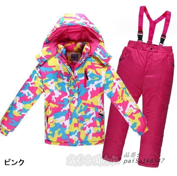 迷彩 スノーウェア ボードウェア キッズ 上下セット 子供服 サロペットパンツ ジュニア 雪遊び スノボ ジャケット 保温性 サスペンダー 110-150 防寒 撥水加工 pai 5 a 168547