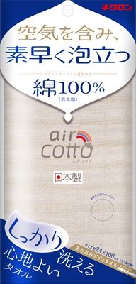 キクロンオリジナルの4重編みで空気をたっぷり含み素早く泡立つ。通気性が向上し乾きも早くなり衛生的に使用できます。凹凸がでる編み方でしっかりとした肌触り。