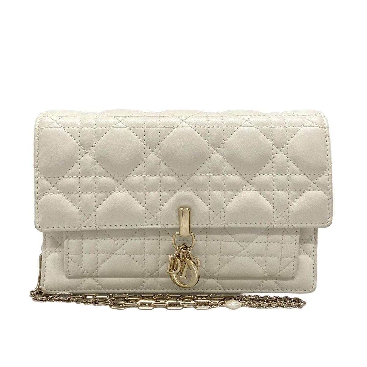 DIOR ChristianDior ディオール クリスチャンディオール 財布 マイディオール デイリーチェーンポーチ 白 チェーンウォレット ラムスキン