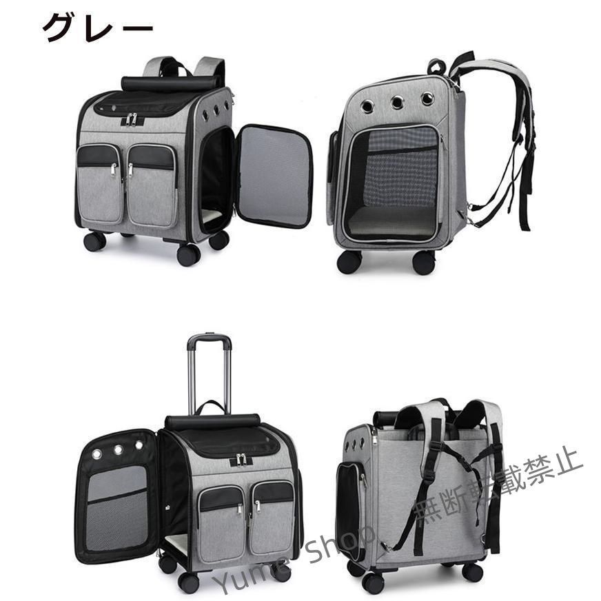 ペットキャリーカート キャスター付き 4輪 多頭 猫犬用 キャリーバッグ リュックサック キャリーショルダー キャリーカート 小型犬 犬 子猫 dhjc 162