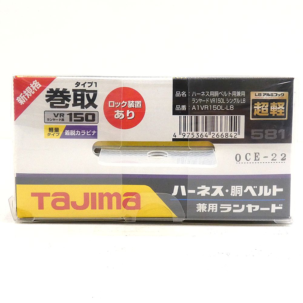 【商品名】未開封 TAJIMA ハーネス胴ベルト兼用ランヤード VR150L シングル L8 A1VR150L-L8