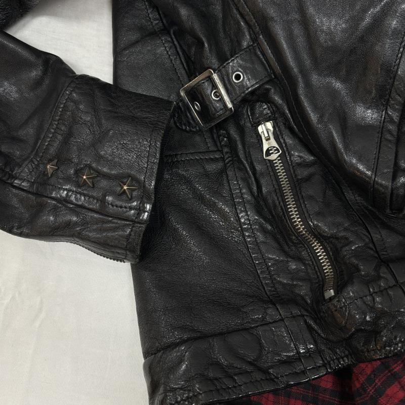 G23U532 シングル ライダース カーフ レザー ジャケット エルボーパッチ スター スタッズ