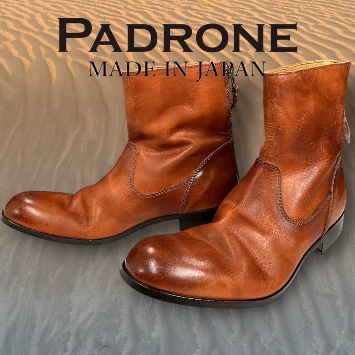 PADRONE パドローネ 日本製 BACK ZIP BOOTS バックジップ ブーツ レザーブーツ 革靴 PU7885-1101-11C 定価3.4万 キャメル ▲050▼30609h12