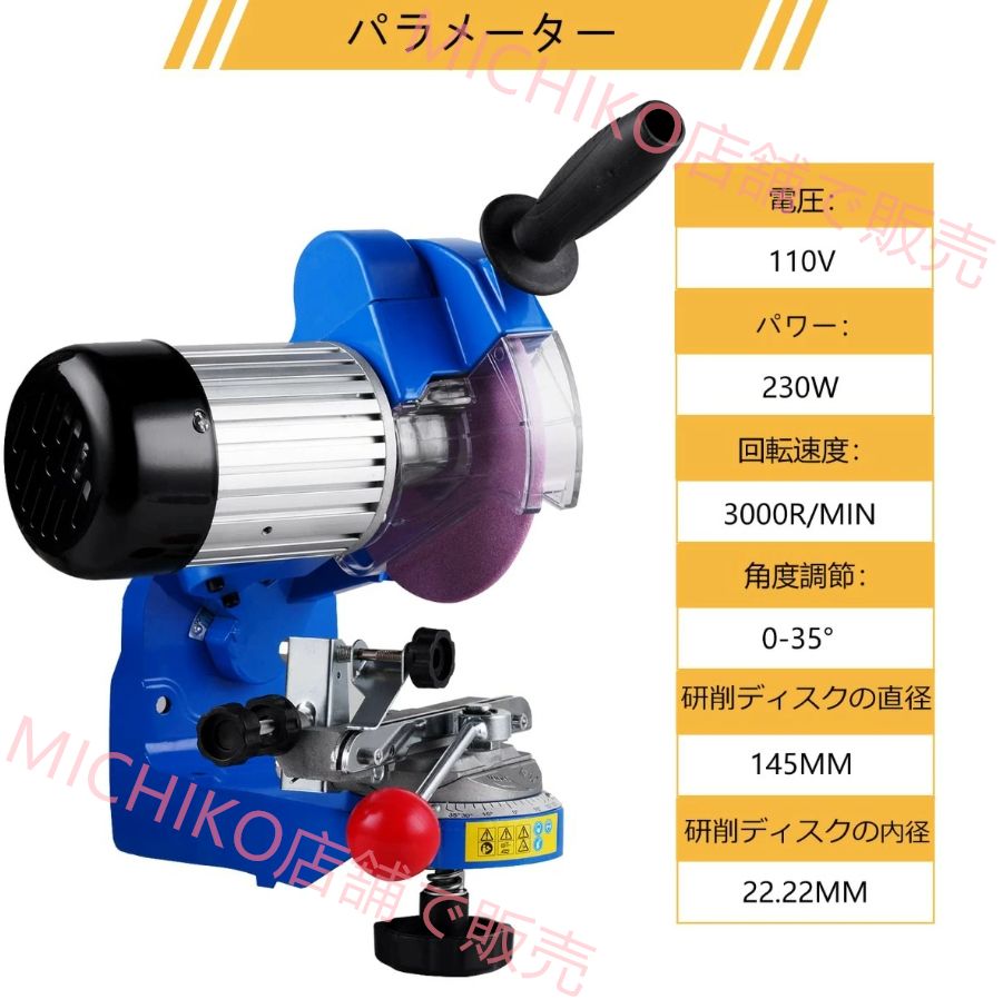 電動式チェンソー目立機 チェーン研磨機 チェンソー目立て機 0 35°角度調整 電気チェーンソーシャープナー 回転速度3000 r min 230 W 110 V 3 2 mm交換ディスク 付き