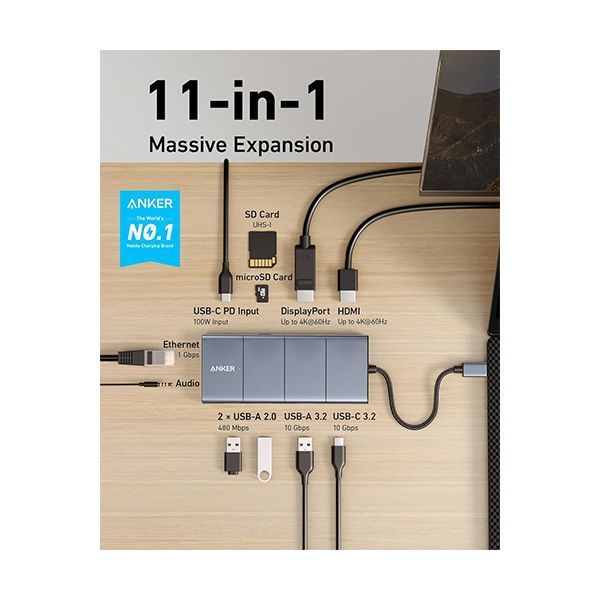 アンカージャパン ANKER 565 USB-Cハブ 11-in-1 10 Gbps PD 100 W対応 グレー