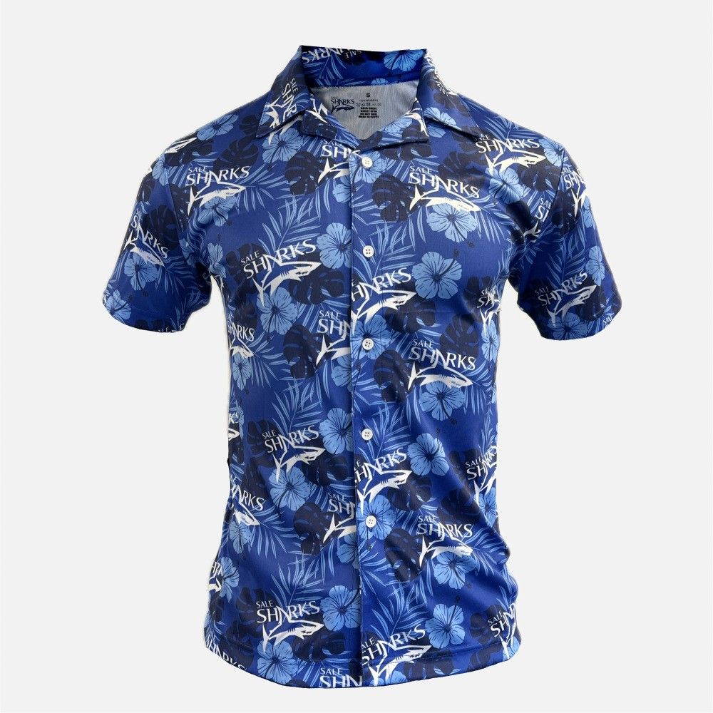 プレミアシップ・ラグビーに所属する「セール・シャークス」の2025年公式ハワイアンシャツです。