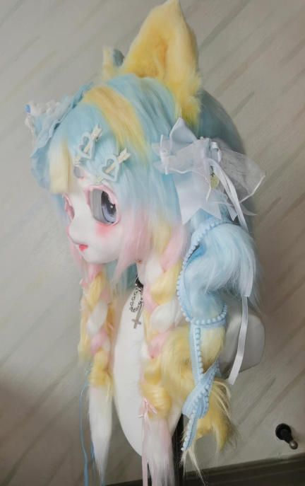 着ぐるみヘッド kigurumi NO.172 猫 水色 黄色 ファースーツ 全頭ヘッド ケモノ マスク ぬいぐるみ コスプレ コスチューム