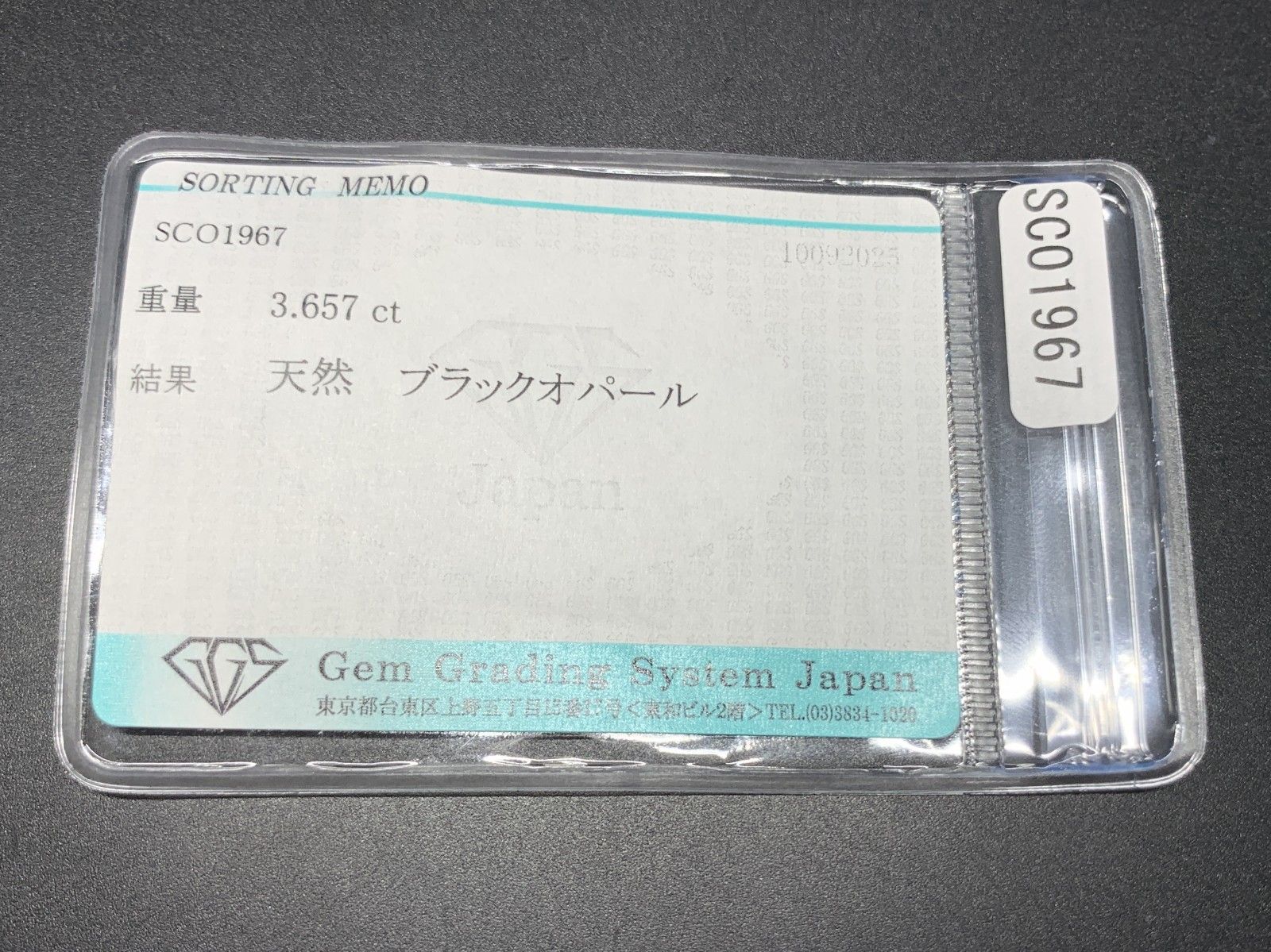 ブラックオパール 天然 3.657 ct 宝石ソーティング付き 11.9㎜×10.0㎜×5.1㎜ ルース 裸石 6834 Y