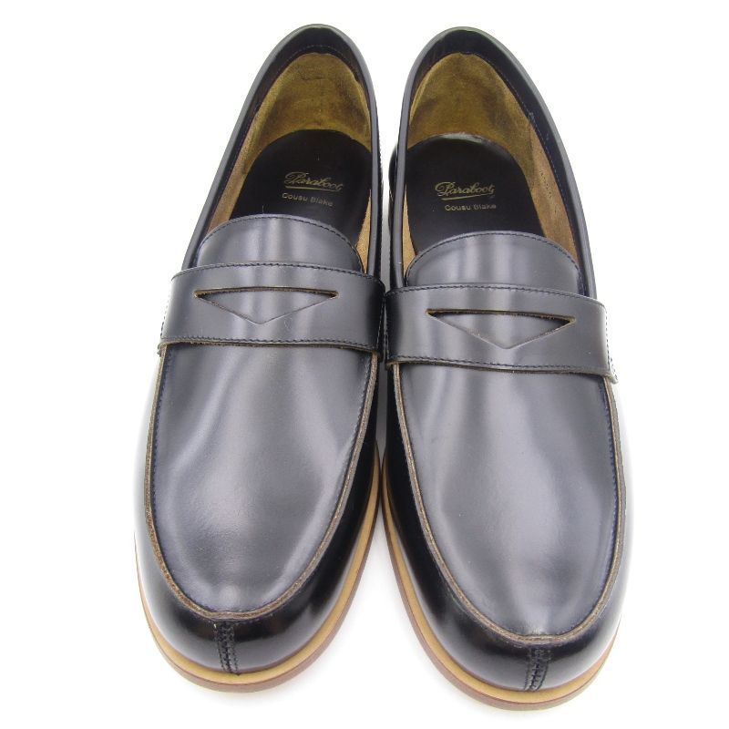 未使用 Paraboot パラブーツ UK7 MARSAN 205227 Loafer ローファー スリッポン グロス ガラス加工 レザーソール ブラック 黒