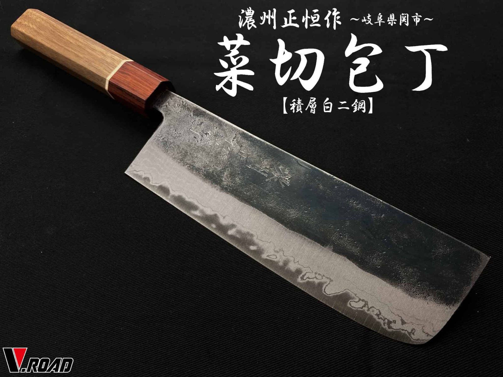 濃州正恒作 V ROAD 松炭焼入 菜切包丁 165 mm 積層白二鋼 八角柄 MMN