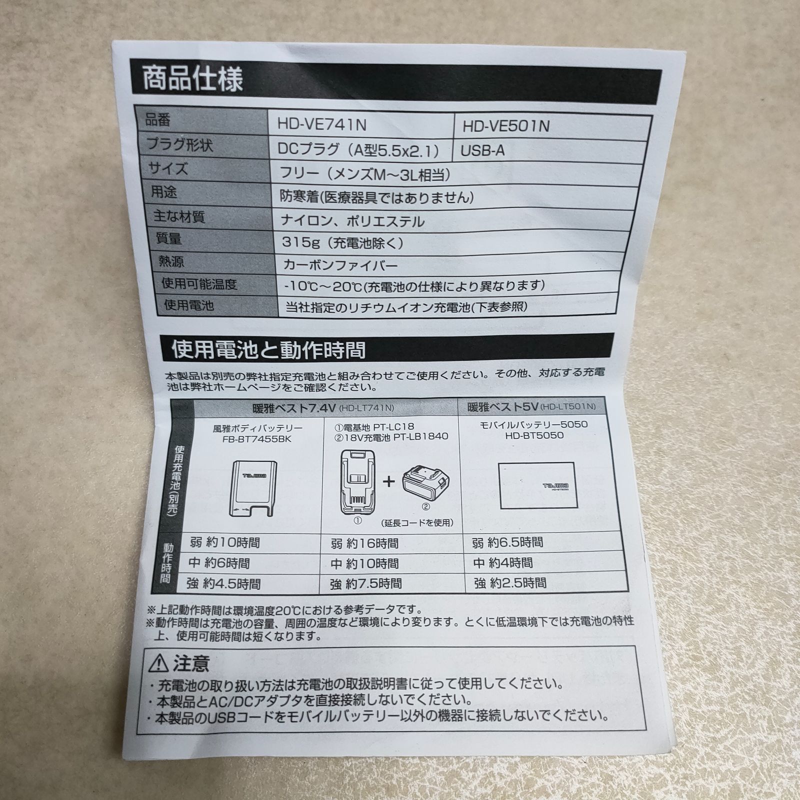 TaJIma 温着ヒーター 暖雅ベスト ACアダプター バッテリー セット