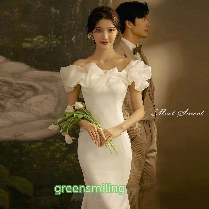 ウェディングドレス ウエディングドレス フリル 二次会 結婚式 前撮り ブライダル ロングドレス 花嫁 マーメイドドレス オフショルダー リWP数量 価格926