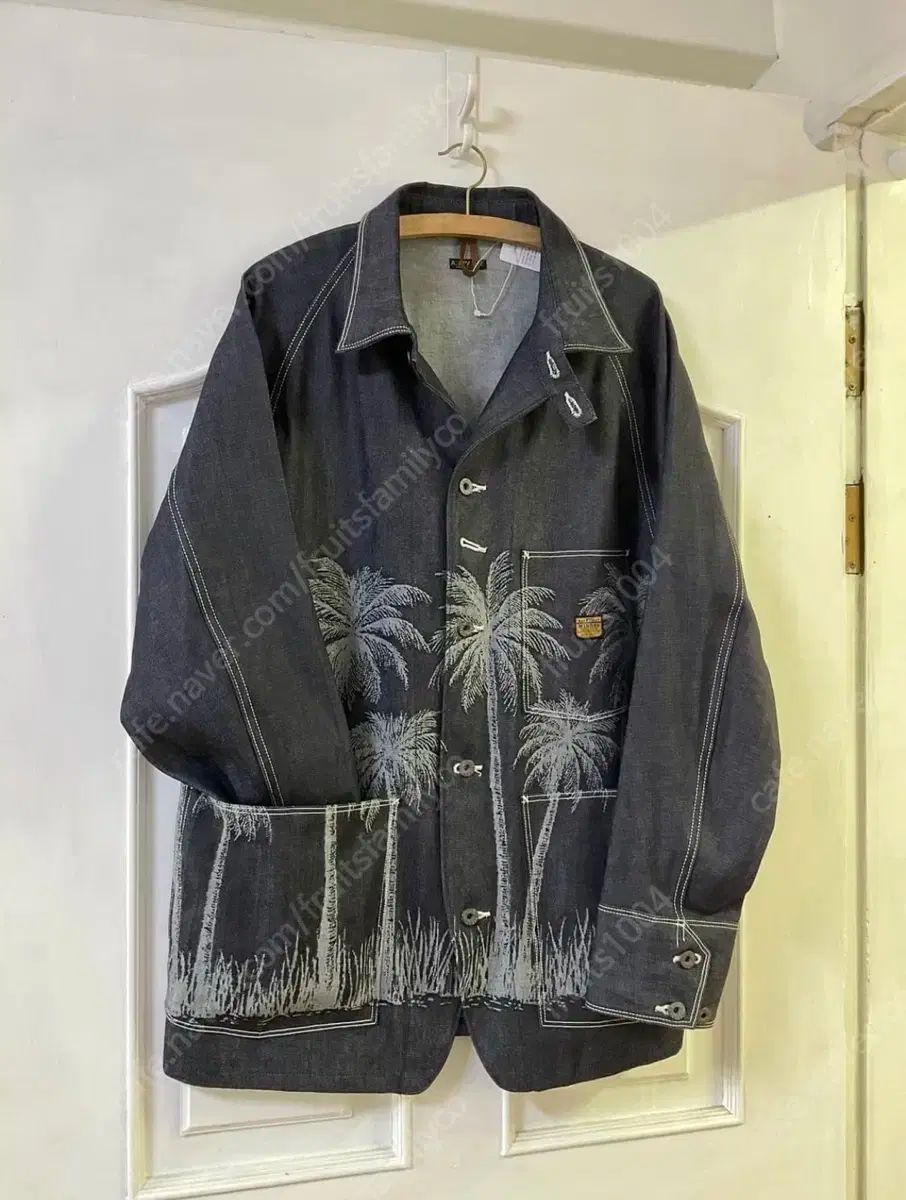 これはキャピタルパームツリーのデニムジャケットです。ヤシの木のプリントが全体に強調されています。希少なアイテムなので、所有する価値があります。ご不明な点がなければ、すぐに安心してお支払いいただけます!