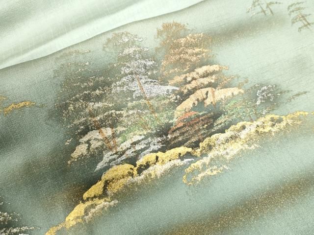 平和屋着物 訪問着 樹林京風景文 暈し染め 金銀彩 ロング丈 正絹 yc