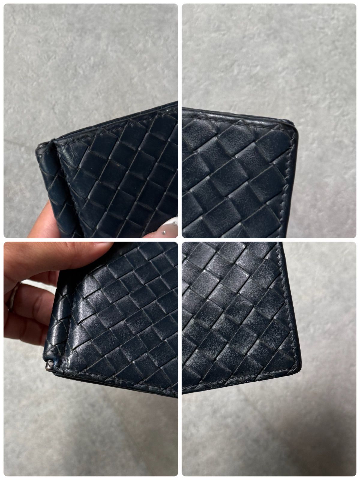 BOTTEGA VENETA ボッテガヴェネタ イントレチャート マネークリップ 二つ折り財布 カードケース カーフレザー ネイビー ブルー バイ ボッテガ
