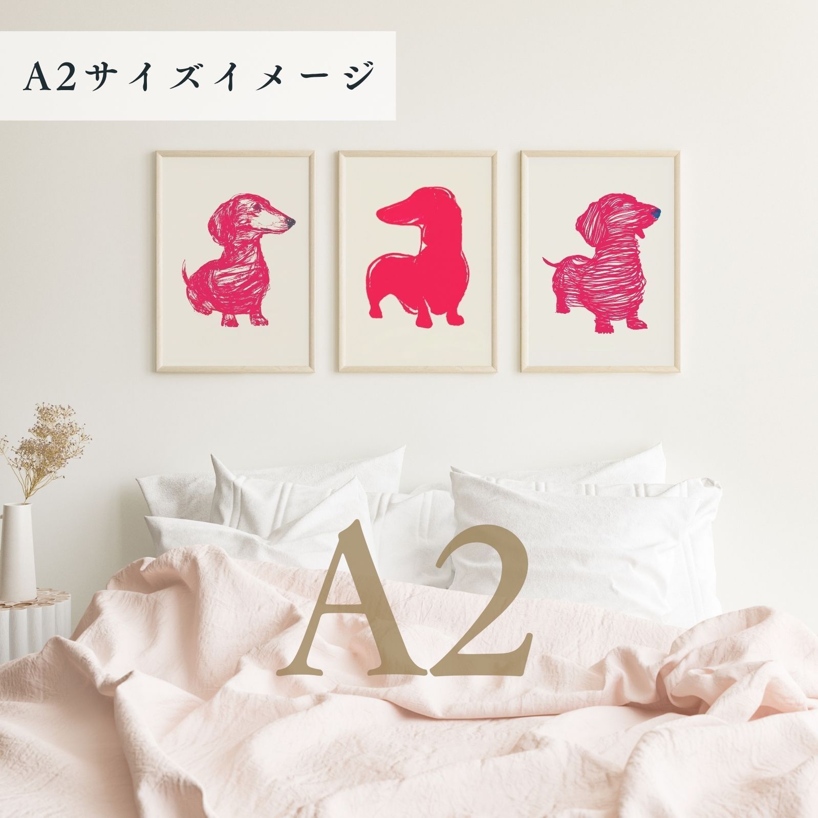 小さすぎず大きすぎない、A2ポスターサイズ(420 × 594mm)の高画質・高品質のドッグアートプリント絵画です。