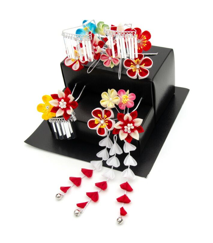 七五三 753 着物 子供用髪飾り セット 赤 レッド ホワイト 白 2021 2105 髪留め 和装 小物 5歳 7歳 和柄 花柄 和雑貨 jrkamikazari-00007