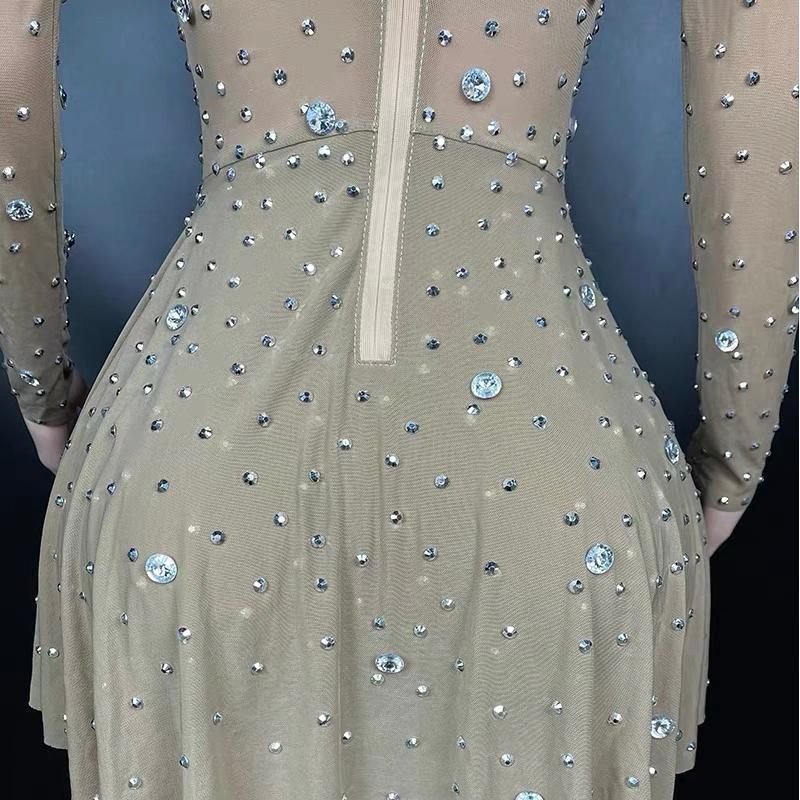 社交ダンスドレス ベリーダンス衣装 全面スパンコール プリーツ ミニスカート シースルー ロングスリーブ ステージ ドレス 2 選択