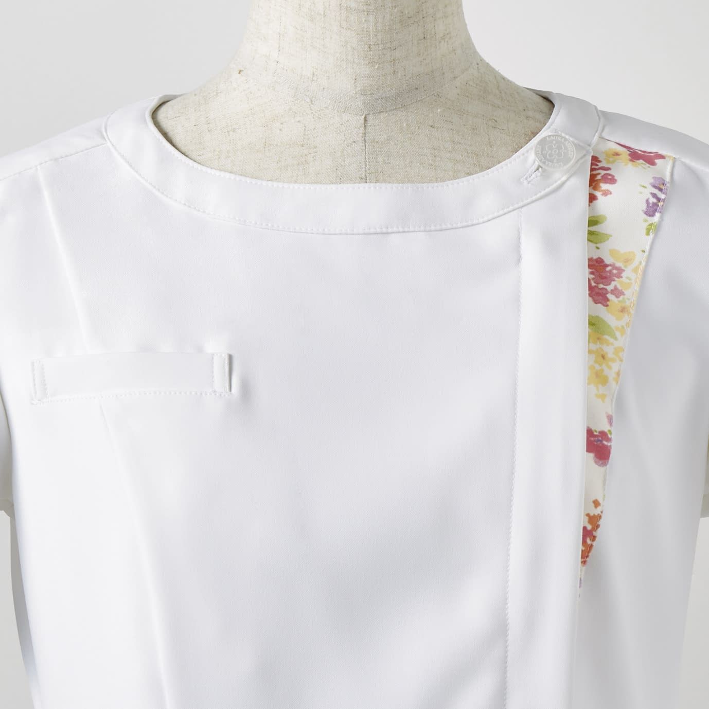 ナースジャケット 半袖 スクラブ 24-6994-0002 M ローラ アシュレイ LW 601-12 ホワイトXアメリピン