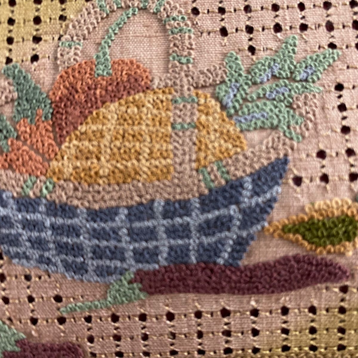 名古屋帯 秀品 紬地 色紙 生り物 刺繍 茶色 正絹