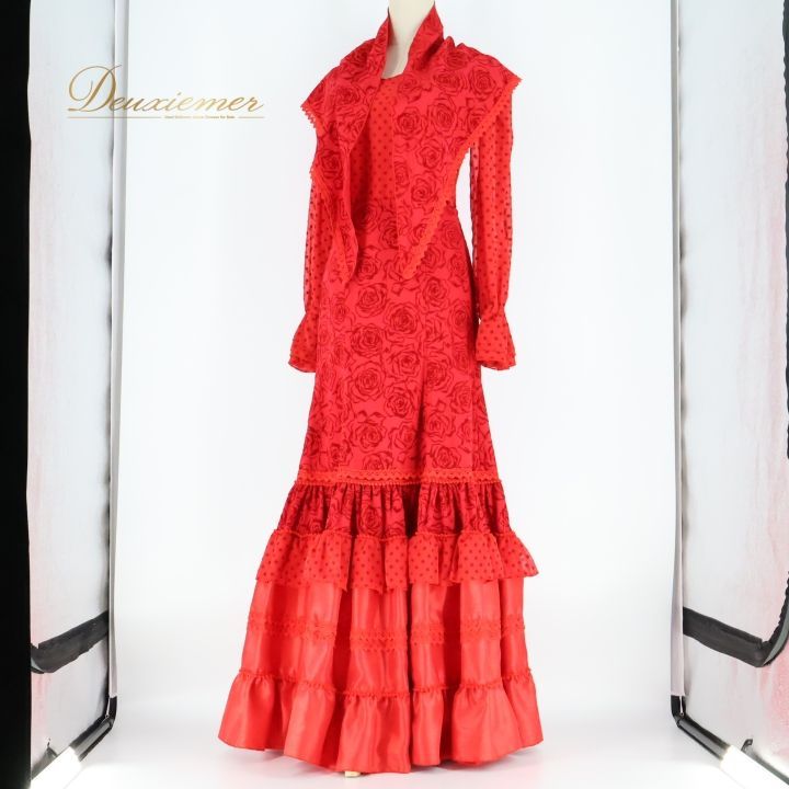 フラメンコ 衣装 ソニアジョーンズ SONIA JOHNES トップス ファルダ スカート シージョ ツーピース レッド セットアップ 赤 上下セット ボランテ フリル 水玉 ドット ベロア 薔薇 レッド系 フラメンコ衣装 感 ツーピースセットアップ 赤系