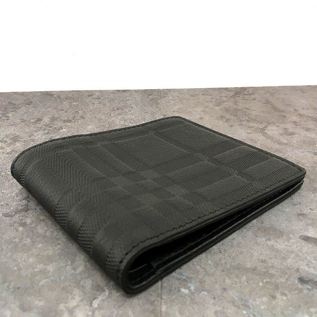 ブラックレザーにチェックが型押しされたバーバリーらしいお財布です。