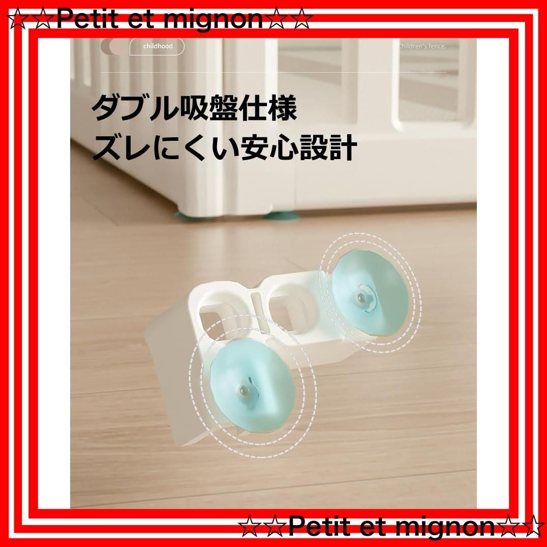 【2way 】 収納棚へ変身可能 【固定ホルダー+吸盤付き 】固定式ホルダーなので、折りたためるタイプのサークルより随分安定します。さらに底面ホルダーに吸盤があって、サークルがズレたり倒れたりするのを防止できます 【手足が挟まりにくい設計 】お子様が指や手を挟んでケガをしないように、各パネルの隙間や間隔などは緻密に計算されています。 【地球と子供に優しいHDPE素材】ツルツルしたHDPE素材なので水濡れに強く、汚れてしまってもすぐに拭き取ってきれいにすることができる。無害・無毒 赤ちゃんが舐めてしまっても問題ない材質でできてるので安心です。 【組み立て簡単】工具を使わず、差し込むだけで簡単に組み立てができます。 【より安全な高さ】パネルの高さはたっぷりの63m、安全性を考慮した高さで、お子様が乗り越えにくい仕様です。