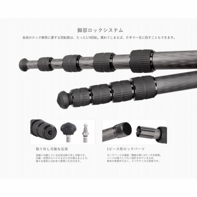 LeofotoMP-284Cカーボン4段一脚レオフォトMP-284C10層カーボンファイバーチューブを採用。小型軽量な4段一脚。主な仕様