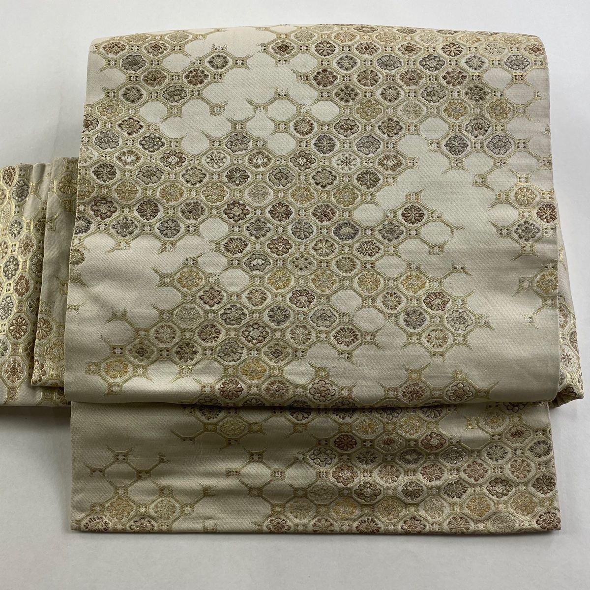 付け帯 秀品 作り帯 蜀江華文 箔 ベージュ 正絹