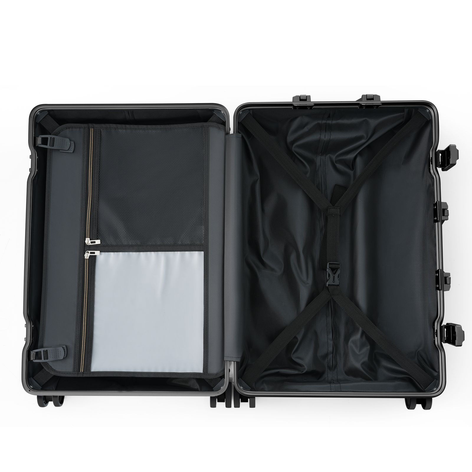 POINT 3.【たっぷり入る使いやすい内装を防水ポケット】防水ポケット付き仕切り板、お荷物を水から守ります。また、両面ともクロスバンドがついているので、荷物をしかっり固定できて、荷崩れも防止してくれます。 ※内部ファスナーについて ケース内部にあるファスナーはメンテナンス専用ファスナーとなります。修理が必要になった場合のみ使用するファスナーのため、あえてファスナーのつまみがついていません。お荷物を入れるものではないので、ご了承ください。