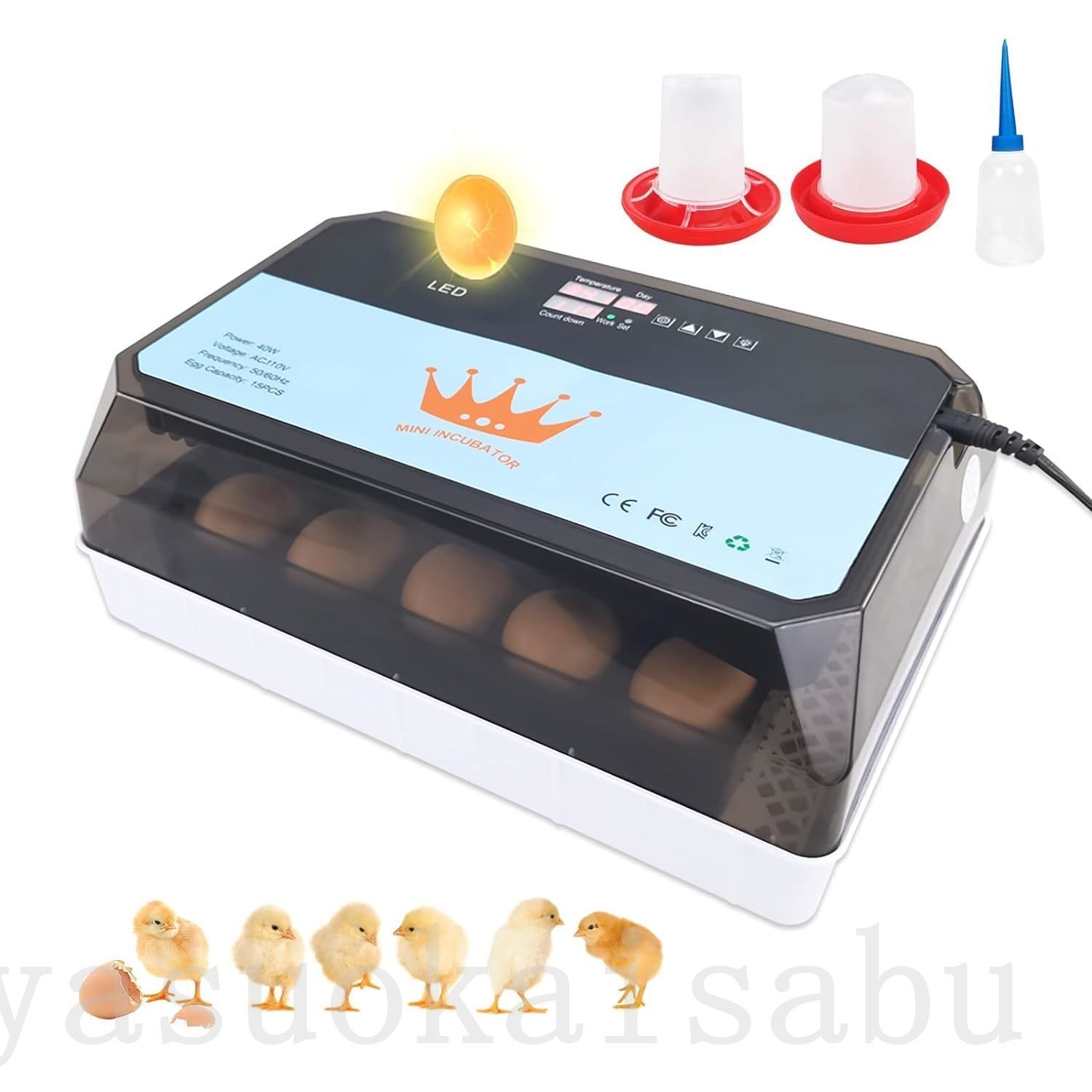 自動孵卵器 インキュベーター 検卵ライト内蔵 自動転卵式 自動温度調節 大型 LED冷光付き デジタル表示 発泡スチロール 引き出し式注水トレイ 低騒音 鶏 アヒル ウズラ ガチョウ スズメ オウムの卵 鳥類の卵の孵化用 tni 6718