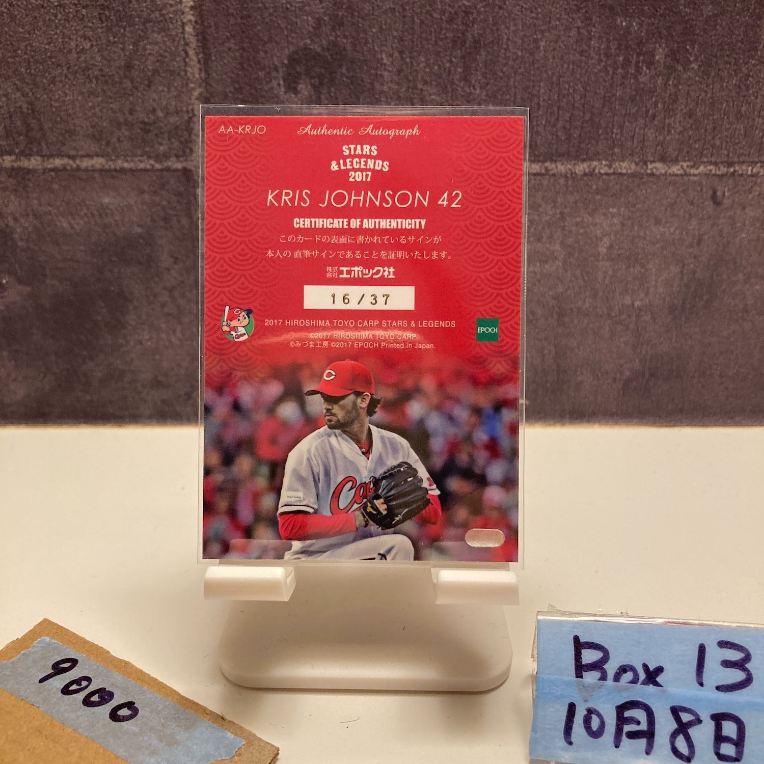 2017 Epoch Stars Legends Kris Johnson クリスジョンソン 16 37 直筆サインカード 広島東洋カープ カード